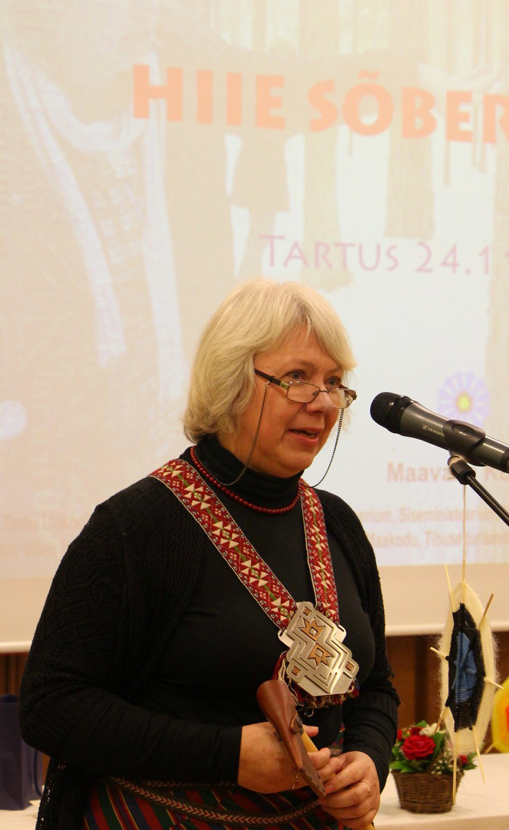 Like last years, a folk belt made for her was tied around the Friend of Sacred Groves and she was given an axe. Ahto Kaasik, Elder of Maavalla Koda (the organization of native Estonians) said at the recognition event that the axe given to the Friend of Sacred Groves is a dignified tool, weapon and charm that embodies universal values. „The power of a word as well as that of a blade can bring disaster in the hands of the unworthy and good deeds in the hands of good people. As people we are not measured by our wisdom, values, strength, skills, position, assets or contacts but by what we do with them. An axe can create but it can also destroy, it can attack but also defend. Therefore, the axe given to the Friend of Sacred Groves embodies both the freedom of choice as well as responsibility. An axe given by the community of native people also carries the meanings of trust and respect towards this person.“
